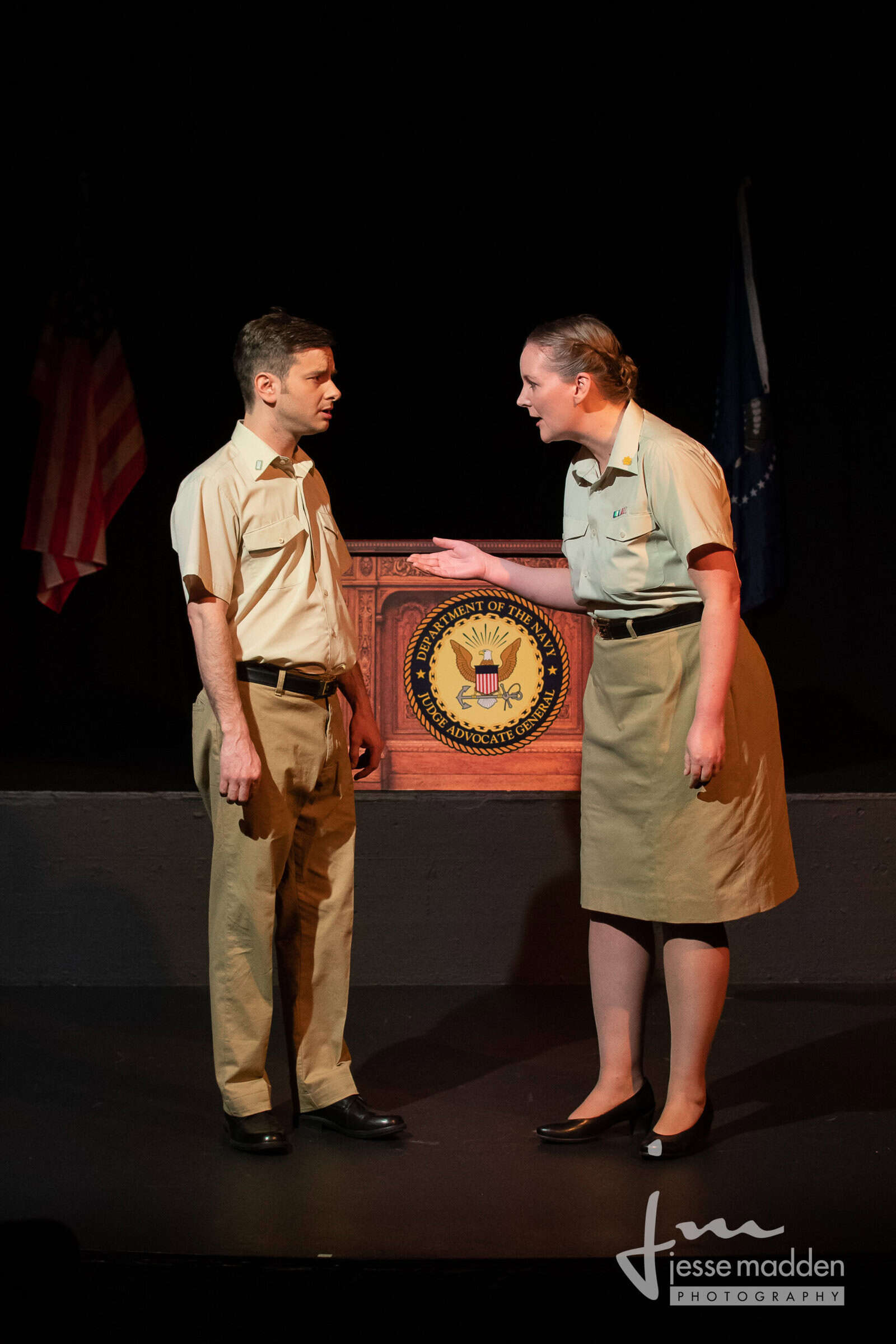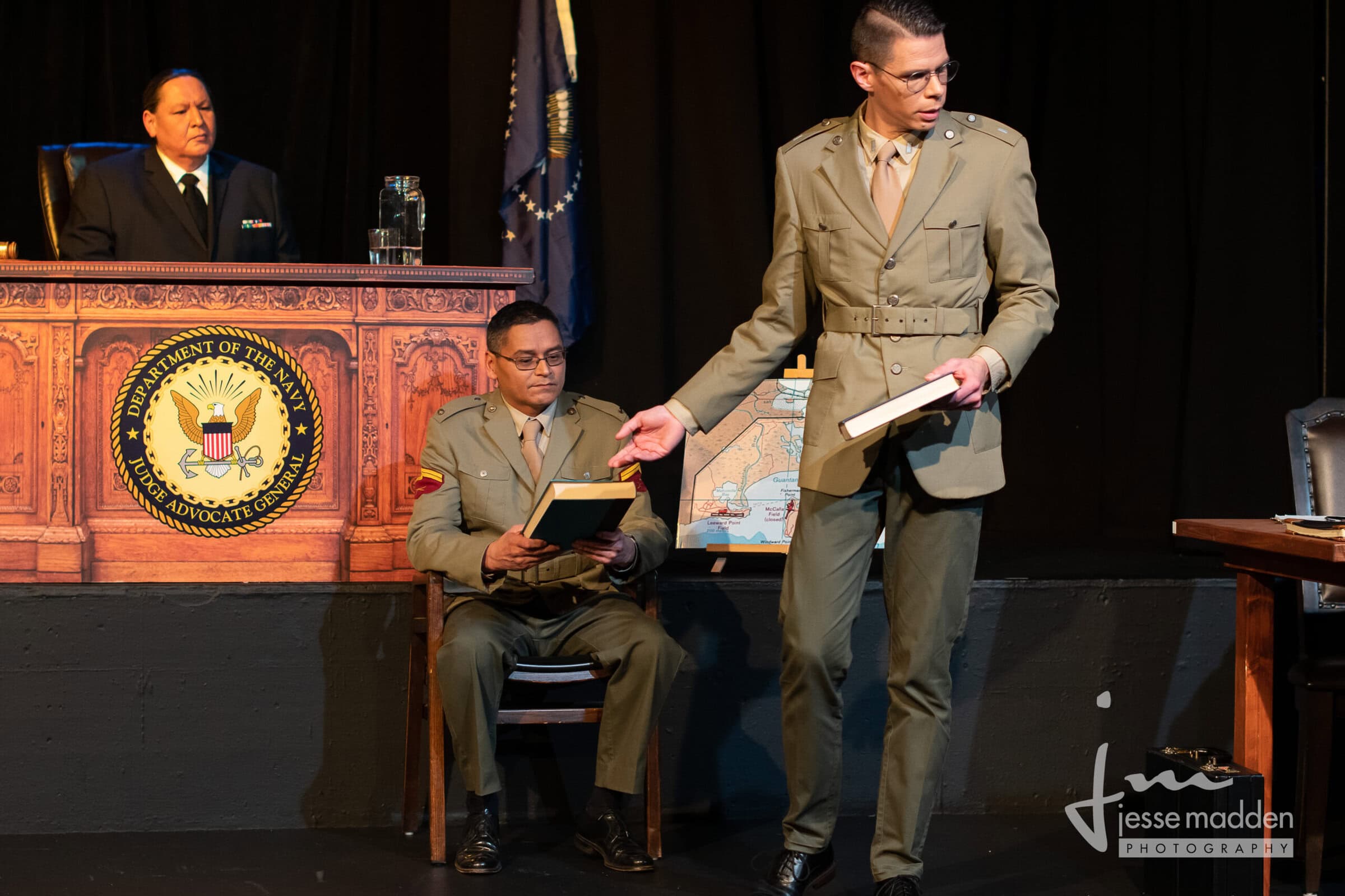 This Broadway hit about the trial of two Marines for complicity in the death of a fellow Marine at Guantanamo Bay sizzles on stage. The Navy lawyer, a callow young man more interested in softball games than the case, expects a plea bargain and a cover-up of what really happened. Prodded by a female member of his defense team, the lawyer eventually makes a valiant effort to defend his clients and, in so doing, puts the military mentality and the Marine code of honour on trial.
